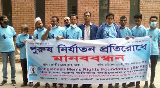 আজ শনিবার ঢাকা রিপোর্টার্স ইউনিটির (ডিআরইউ) সামনে ‘বাংলাদেশ মেনস রাইটস ফাউন্ডেশনে’র উদ্যোগে পুরুষ নির্যাতন প্রতিরোধে এ মানববন্ধনের আয়োজন করা হয়।