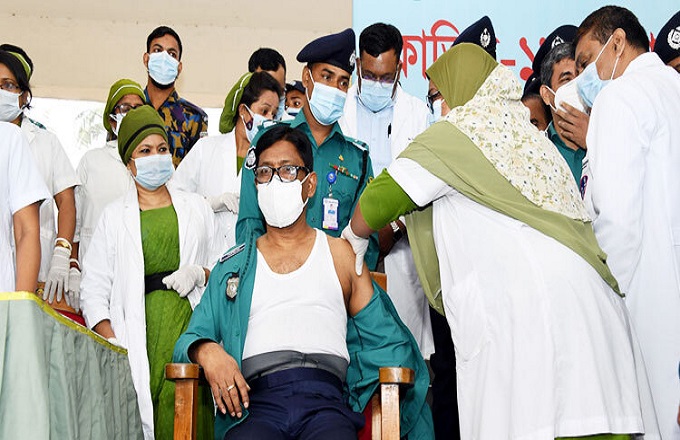 দেশব্যাপী করোনা ভ্যাকসিন প্রদানের প্রথম দিনে রাজারবাগ পুলিশ লাইন্স মাঠে করোনার টিকা নিয়েছেন ঢাকা মেট্রোপলিটন পুলিশ (ডিএমপি) কমিশনার মোহা. শফিকুল ইসলাম বিপিএম-বার।