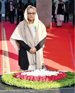 প্রথমে তিনি প্রধানমন্ত্রী হিসেবে বঙ্গবন্ধুর প্রতিকৃতিতে শ্রদ্ধা নিবেদন করেন। পরে আওয়ামী লীগের সভাপতি হিসেবে দলের শীর্ষ নেতাদের নিয়ে দ্বিতীয় বার বঙ্গবন্ধুর প্রতিকৃতিতে শ্রদ্ধা নিবেদন করেন।