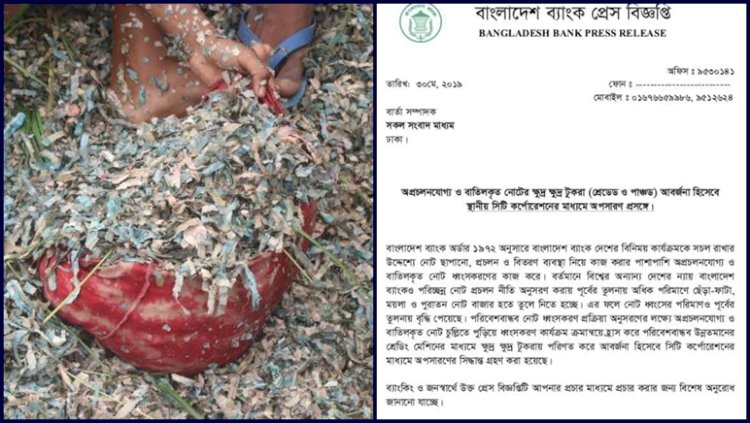 এছাড়াও গত ৩০ মে, সকল সংবাদ মাধ্যমের বার্তা সম্পাদককে উদ্দেশ্য করে বাংলাদেশ ব্যাংকের পক্ষ থেকে কমিউনিকেশন্স ও পাবলিকেশন্স ডিপার্টমেন্টের মহাব্যবস্থাপক জী. এম. আবুল কালাম আজাদ স্বাক্ষরিত একটি প্রেস রিলিজের মাধ্যমে অপ্রচলনযোগ্য ও বাতিলকৃত নোটের ক্ষুদ্র ক্ষুদ্র টুকরা (শ্রেডেড ও পাঞ্চড) আবর্জনা হিসেবে স্থানীয় সিটি কর্পোরেশনের মাধ্যমে অপসারন প্রসঙ্গে সংবাদ মাধ্যমকে অবহিত করা হয়।