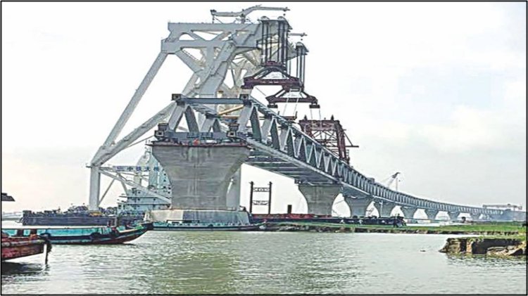 দ্রুত গতিতে এগিয়ে চলছে পদ্মাসেতুর কাজ। মাঝপদ্মায় সেতুর ২৪-২৫ নম্বর পিলারের উপর ধূসর রংয়ের ১৫০ মিটার দৈর্ঘ্যের ও ৩ হাজার ১৪০ টন ওজনের ‘৫-এফ’ স্প্যানটি স্থায়ীভাবে বসানো হয়েছে।