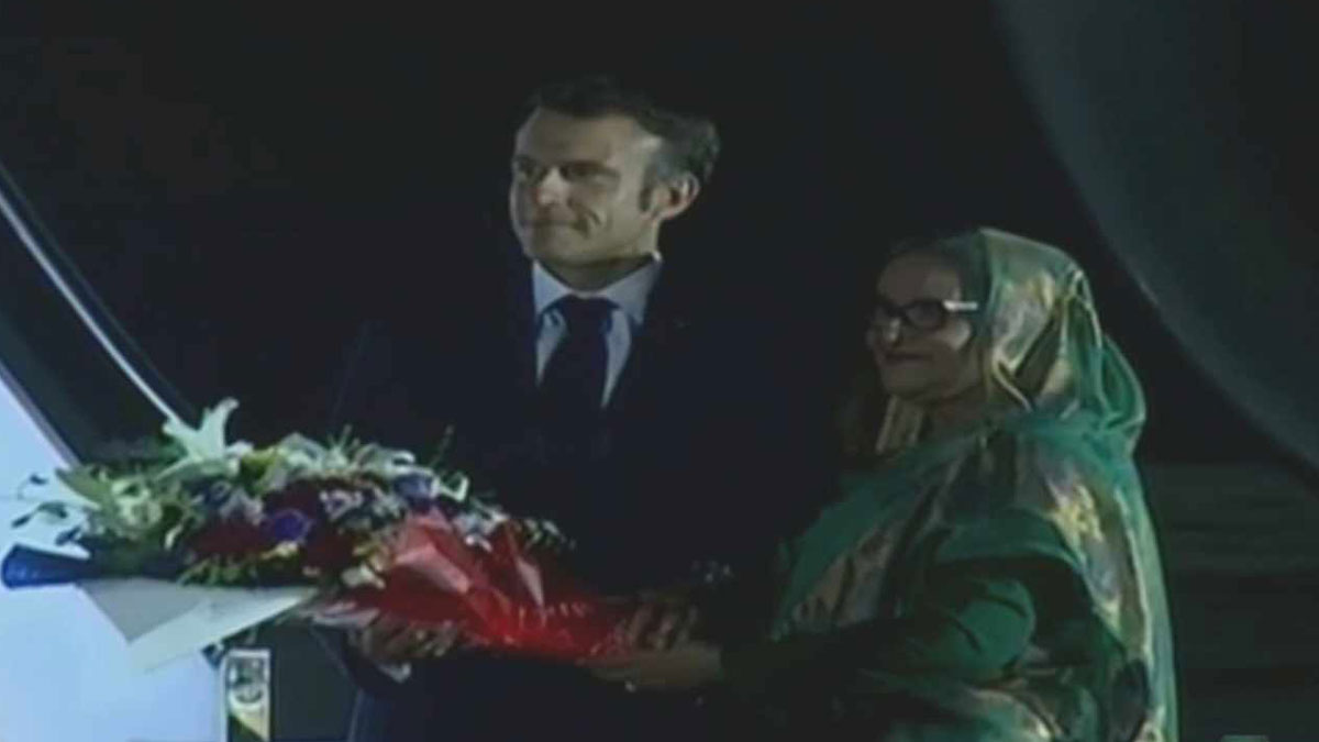 নিজস্ব প্রতিবেদক: ফ্রান্সের প্রেসিডেন্ট ইমানুয়েল ম্যাক্রোঁ ঢাকায় পৌঁছানোর পর তাকে লাল গালিচা সংবর্ধনা দেওয়া হয়েছে।