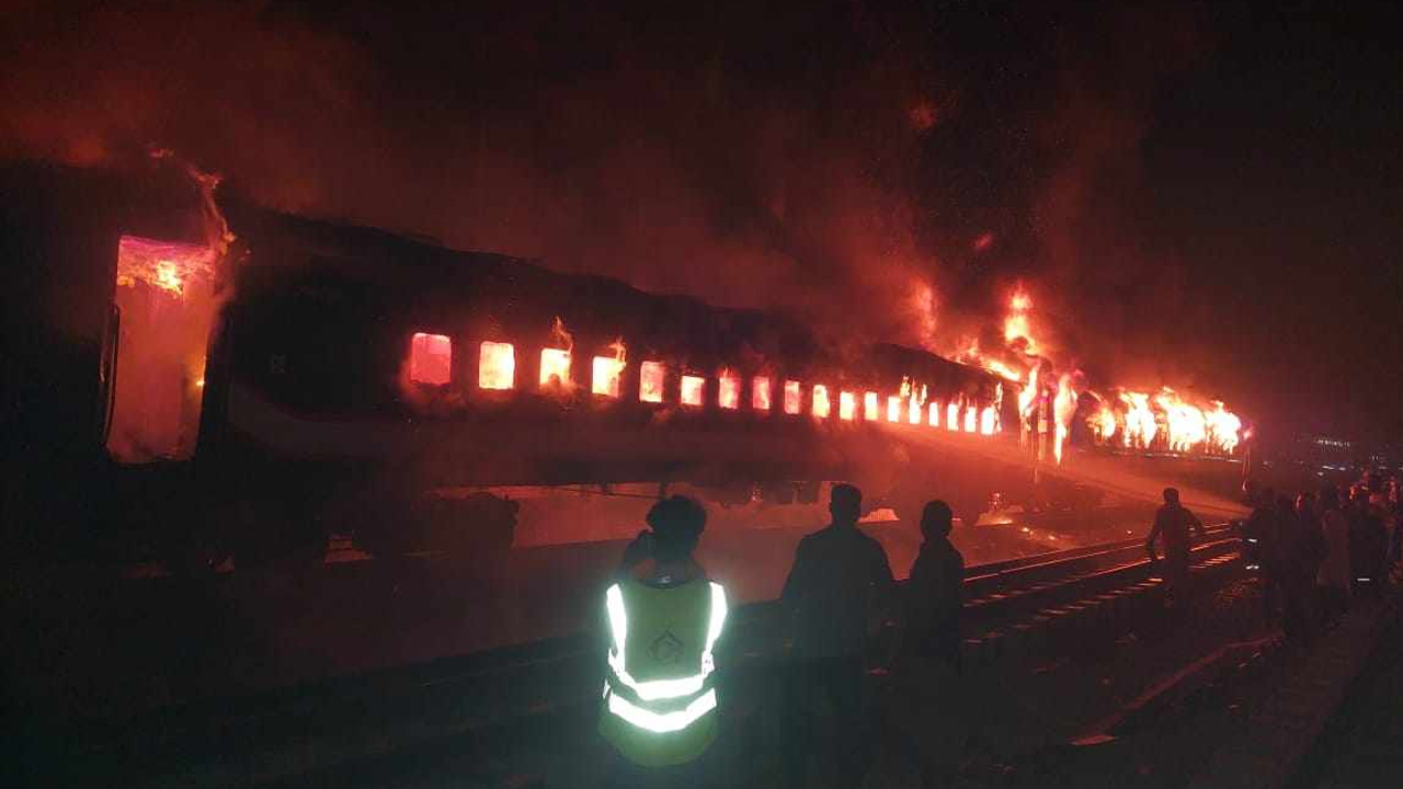 এক প্রত্যক্ষদর্শী জানান, ট্রেনটির ‘চ’ বগির একটি সিটে প্রথমে আগুন লাগে। প্রাথমিক পর্যায়ে আগুন নেভানোর চেষ্টা করেন যাত্রীরা। পরে আগুন ছড়িয়ে পড়লে যাত্রীরা প্রত্যক্ষদর্শীদের সহায়তায় নিচে নেমে আসেন। তবে এ সময় অনেক যাত্রী ভেতর থেকে বের হতে পারেননি বলে শঙ্কা রয়েছে। বের হতে না পারাদের মধ্যে একজনকে বগিতে আগুনে দগ্ধ হতে দেখা যায়। তবে ভেতরে কত লোক আছে সেটা জানা যায়নি।