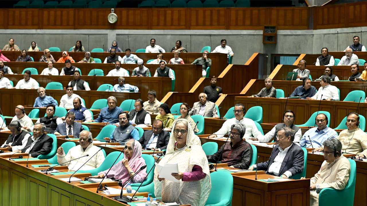প্রধানমন্ত্রী শেখ হাসিনা জাতীয় সংসদে দ্বাদশ জাতীয় সংসদের বাজেট অধিবেশনে ২০২৪-২৫ অর্থবছরের বাজেটের ওপর আলোচনায় সমাপনী বক্তব্য রাখেন। ছবি : পিআইডি।