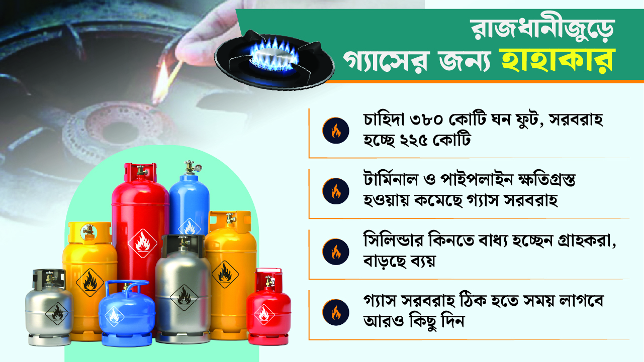 ধানমন্ডির বাসিন্দা আফরোজা আক্তার বলেন, প্রতিমাসে গ্যাসের বিল দিতে হয়, কিন্তু গ্যাস থাকে না। দিনের যে সময়টায় আমাদের গ্যাস দরকার তখনই পাওয়া যায় না। না খেয়ে তো আর থাকা যাবে না, তাই বাধ্য হয়ে সিলিন্ডার কিনে রান্না করছি।
