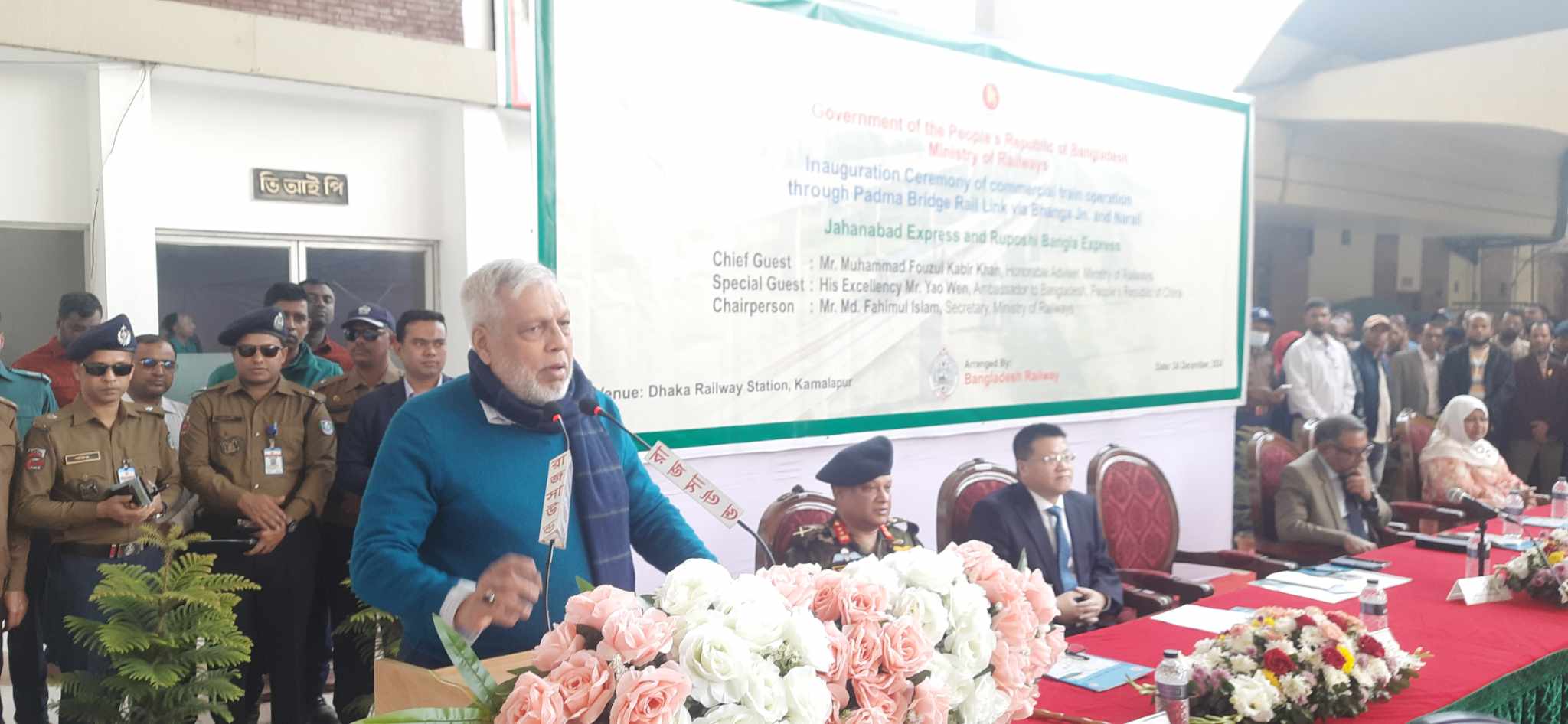 মঙ্গলবার (২৪ ডিসেম্বর) সকালে ঢাকা রেলওয়ে স্টেশন (কমলাপুর) ঢাকা-খুলনা-ঢাকা রুটের আনুষ্ঠানিক উদ্বোধনী অনুষ্ঠানে তিনি এসব কথা বলেন।