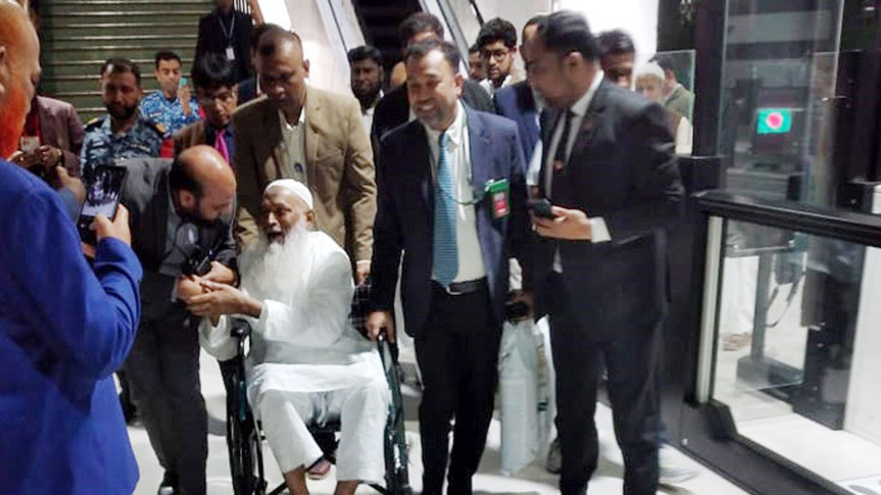 শনিবার (২৮ ডিসেম্বর) বেলা সাড়ে ১১টায় দেশের মাটিতে পা রাখেন তিনি। ওইদিন সৌদি আরব থেকে সৌদি এয়ারলাইনসের একটি ফ্লাইটে ঢাকার হযরত শাহজালাল আন্তর্জাতিক বিমানবন্দরে অবতরণ করেন। এ সময় দলমত নির্বিশেষে তাকে স্বাগত জানাতে কুমিল্লা জেলার মুরাদনগর উপজেলা বিএনপি, বৈষম্যবিরোধী আন্দোলনের ছাত্র-জনতা, আলেম-ওলামা, মাওলানা, শিক্ষক, পেশাজীবী, সচেতন নাগরিকসহ সব ধর্ম শ্রেণিপেশার লক্ষাধিক মানুষের ঢল নামে।