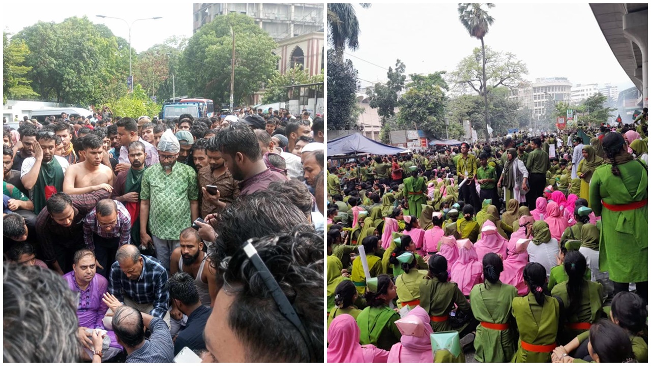 ডিপ্লোমাকে ডিগ্রির মান দেওয়ার দাবিতে নার্সিং শিক্ষার্থীরা রাজধানীর শাহবাগ মোড় অবরোধ করেছেন। অন্যদিকে তিন দফা দাবিতে ‘লং মার্চ টু যমুনা’ কর্মসূচিতে বাধার পর রাজধানীর কাকরাইল মোড়ে অবস্থান নিয়েছেন জগন্নাথ বিশ্ববিদ্যালয়ের (জবি) শিক্ষার্থীরা।