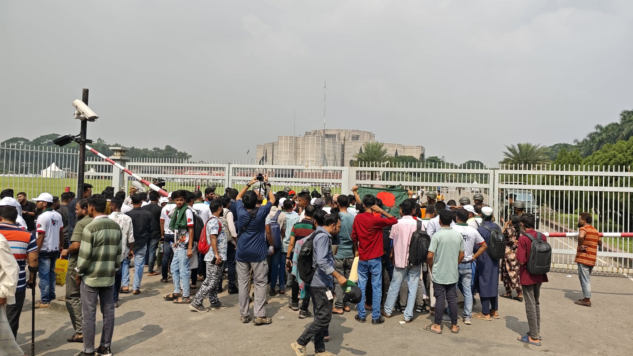 বেলা ১১টার দিকে অনুষ্ঠানস্থলে সরেজমিনে দেখা গেছে, অতিথিদের জন্য বরাদ্দ করা চেয়ারগুলোতে বসে রয়েছেন জুলাই যোদ্ধারা। অতিরিক্ত পুলিশ সদস্য এরইমধ্যে ঘটনাস্থলে উপস্থিত হয়েছেন। পুলিশের উর্ধতন কর্মকর্তারা জুলাই যোদ্ধাদের সঙ্গে কথা বলছেন। অনুরোধ করছেন অনুষ্ঠানস্থল ছেড়ে দেওয়ার জন্য।