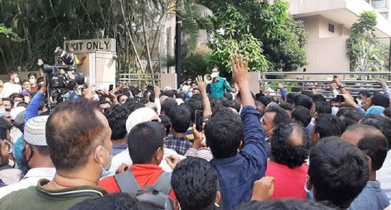 সকাল থেকেই রাজধানীর কারওয়ান বাজারের পাঁচতারকা হোটেল সোনারগাঁওয়ের সামনের রাস্তায় ভিসা ও আকামার মেয়াদ বৃদ্ধি এবং সৌদি এয়ারলাইন্সের টিকিটের টোকেন প্রদানের দাবি সম্বলিত ব্যানার নিয়ে জড়ো হন তারা। মিছিল নিয়ে সার্ক ফোয়ারা চত্বর প্রদক্ষিণ করেন। এক পর্যায়ে সড়ক অবরোধের চেষ্টা চালান সৌদিপ্রবাসী কর্মীরা। এ সময় পুলিশ তাদের নিবৃত্ত করে দেয়।