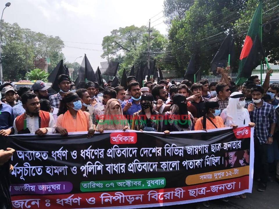 ধর্ষণ ও নিপীড়ন বিরোধী ছাত্র জনতার ব্যানারে তারা কালো পতাকা মিছিল নিয়ে স্বরাষ্ট্র মন্ত্রণালয় অভিমুখে রওনা হয়েছেন। তারা জানিয়েছেন, ধর্ষকদের শাস্তি নিশ্চিত না হওয়া পর্যন্ত তাদের আন্দোলন চলবে।