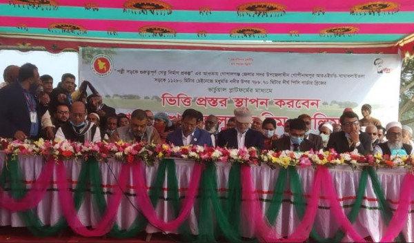 এলজিইডি ‘পল্লী সড়কে গুরুত্বপূর্ণ সেতু নির্মাণ প্রকল্প’ এর আওতায় ৯৭ কোটি ৩০ লাখ টাকা ব্যয়ে গোপালগঞ্জ সদর উপজেলাধীন গোপীনাথপুর-ঘাঘাধলাইতলা সড়কের মধুমতি নদীর উপর ৭৮৮ দশমিক ৯০ মিটার দীর্ঘ পিএসসি গার্ডার ব্রিজ নির্মাণ করছে।