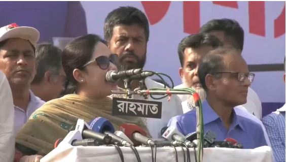 ‘আজকে এই গোলাপবাগ স্টেডিয়ামে এসে দেখে যান, উত্তর থেকে দক্ষিণ, পূর্ব থেকে পশ্চিম শুধু মানুষ আর মানুষ। আজকে বাংলাদেশে শুধু একটাই দল, বাংলাদেশ জাতীয়তাবাদী দল বিএনপি। বিএনপি সাধারণ মানুষের দল, বিএনপি গণমানুষের দল, বিএনপি আপনার দল, বিএনপি আমার দল। আওয়ামী লীগ বলে কোনো দল আর বাংলাদেশে নাই। তারা আছে পুলিশ, প্রশাসন আর আমলা নিয়ে। সাধারণ মানুষ তাদের লাল কার্ড দেখিয়েছে বহু আগে।’