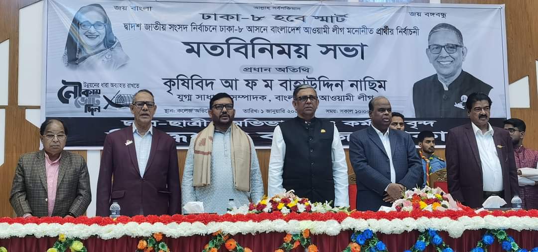 বাংলাদেশ আওয়ামী লীগের যুগ্ম সাধারণ সম্পাদক ও ঢাকা ৮ আসনে আওয়ামী লীগের মনোনীত প্রার্থী কৃষিবিদ আ ফ ম বাহাউদ্দিন নাছিম বলেছেন, বিএনপি-জামাত অশুভ শক্তির হাত থেকে আমাদের বাংলাদেশকে রক্ষা করতে হবে। আমরা আর কোন স্বৈরাচারী, অগণতান্ত্রিক সরকার চাই না। যারা ধ্বংসের, লুটের ও পিছিয়ে পড়ার রাজনীতি করতে চায় তাদের হাত থেকে বাংলাদেশকে রক্ষা করতে হলে ৭ই জানুয়ারি আপনারা ভোটকেন্দ্রে আসুন। একটি সুস্থ, সুন্দর ভোট অনুষ্ঠিত হওয়ার জন্য আপনার মূল্যবান ভোটটি আপনি প্রদান করুন।এ অশুভ শক্তির চিরতরে কবর রচনার জন্য নৌকা মার্কায় ভোট দিন।