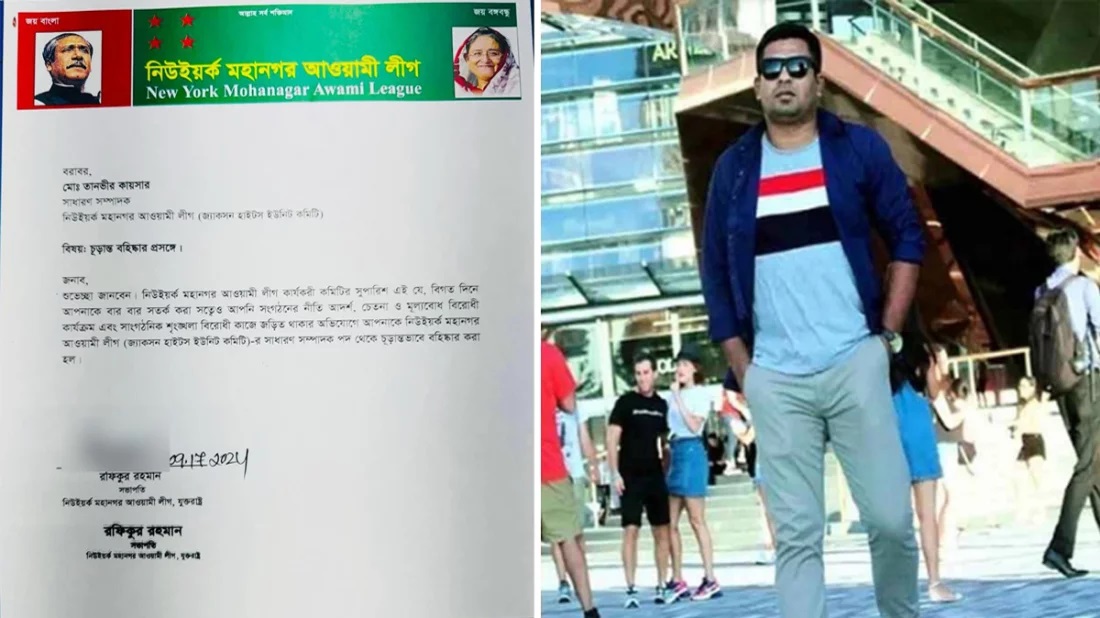 সাবেক প্রধানমন্ত্রী শেখ হাসিনার সঙ্গে ফোনে কথা বলার পর সেই অডিও ক্লিপ সামাজিক যোগাযোগমাধ্যমে ছড়িয়ে দেওয়ায় যুক্তরাষ্ট্রের নিউ ইয়র্ক মহানগর আওয়ামী লীগ জ্যাকসন হাইটস ইউনিট কমিটির সাধারণ সম্পাদক মো. তানভীর কায়সারকে বহিষ্কার করা হয়েছে।