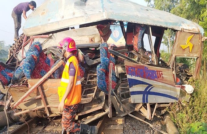 এসময় কালিয়াকৈর উপজেলার বেগুনবাড়ি এলাকায় ইটখোলার লেবার নামিয়ে দিয়ে নেত্রকোনা যাওয়ার পথে উপজেলার সোনাখালী এলাকায় সিগন্যাল পার হওয়ার সময় রেলগেট নামানো না থাকায় এ দুর্ঘটনা ঘটে। ওই বাসটিকে সোনাখালী থেকে ভোঙ্গাবাড়ি পর্যন্ত নিয়ে এসে ট্রেনটি থামে। এতে এক নারী ও এক পুরুষ শ্রমিক নিহত ও চারজন আহত হয়েছেন।