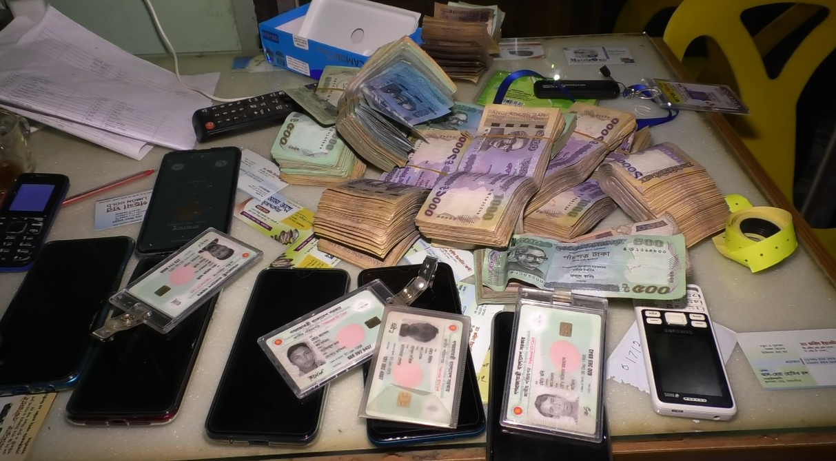 সন্ধ্যায় তাদের অফিসে অভিযান পরিচালনা করে ১২ লাখ ১১ হাজার টাকা, ১০টি মোবাইল ফোন ও কিছু কাগজপত্র জব্দ করা হয়। গ্রেপ্তারকৃতদের বিরুদ্ধে আইনগত ব্যবস্থা নেয়ারও কথা জানান শাহ কামাল আকন্দ।