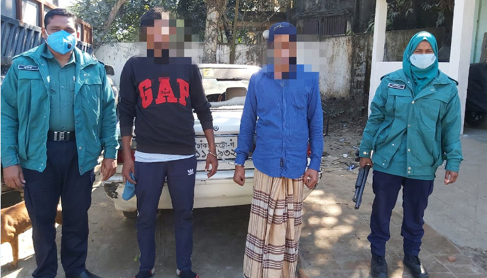 প্রাইভেটকারে চোরাই গরু নিয়ে যাওয়ার সময় গ্রেপ্তার হলেন জকিগঞ্জ উপজেলার আইতলা সোনাসার গ্রামের মৃত তমছির আলীর ছেলে নগরীর উপকণ্ঠ আলুরতল এলাকার বাসিন্দা জামাল উদ্দিন (৪৮) ও বিয়ানীবাজার উপজেলার মাতিউরা ঈদগাহ বাজার এলাকার সামছুদ্দিনের ছেলে রাজন আহমদ (২৪)।