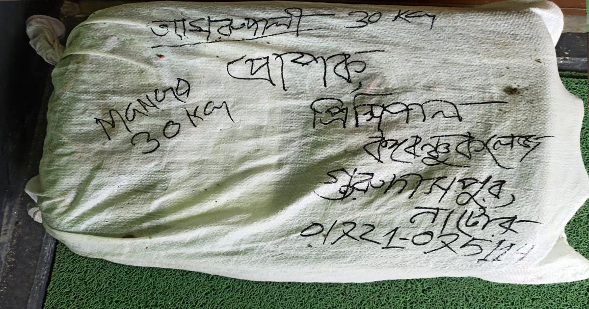 ওপরে লেখা ‘প্রিন্সিপাল বঙ্গবন্ধু কলেজ, গুরুদাসপুর- আম্রপালি ৩০ কেজি’।