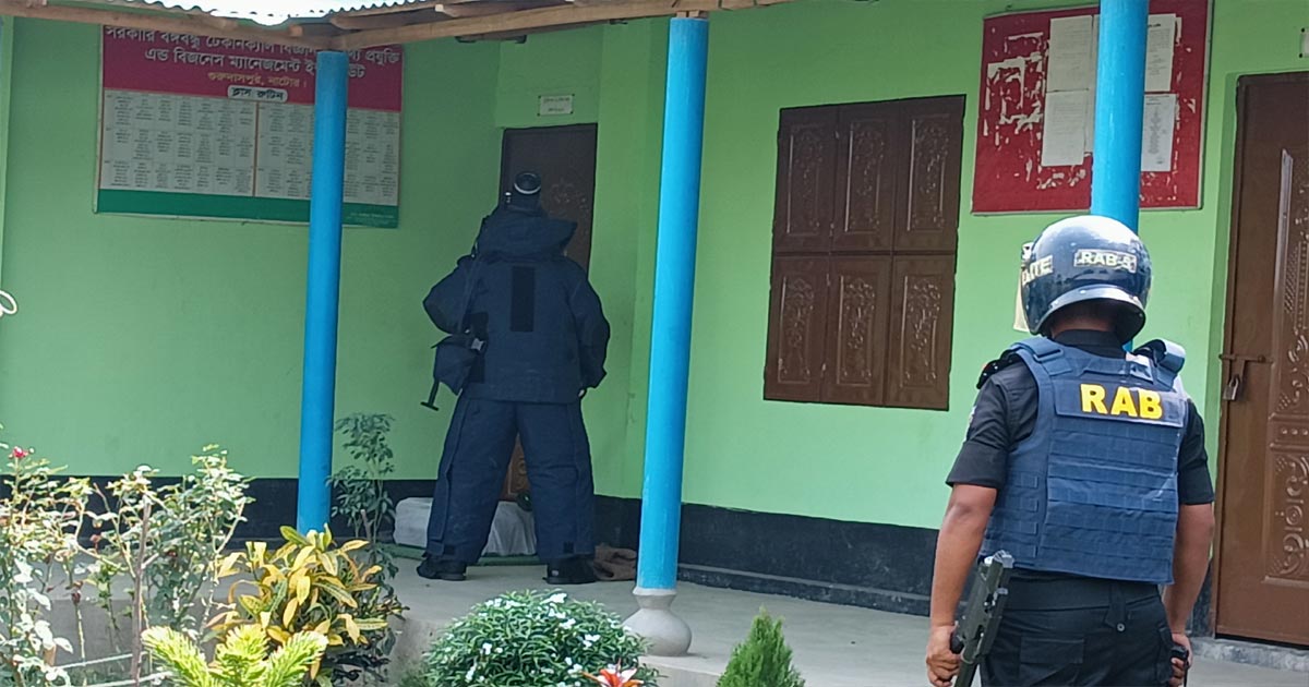তাঁরা এলেই বোমাটি নিষ্ক্রিয় করে পরবর্তী পদক্ষেপ গ্রহন করবেন। তাঁরা না আসা পর্যন্ত স্থানীয় পুলিশ প্রশাসন বিশেষ নজরদারীতে রাখবেন। থানাপুলিশ, কলেজ কর্তৃপক্ষ ও র্যাবের সুত্রে জানাগেছে, গুরুদাসপুর পৌরশহরের ‘সরকারি বঙ্গবন্ধু টেকনিক্যাল বিজ্ঞান ও তথ্য প্রযুক্তি অ্যান্ড বিজনেস ম্যানেজমেন্ট ইনস্টিটিউটে’র অধ্যক্ষের অফিস কক্ষের দরজাঘেঁষেকে বা কারা প্লাষ্টিকের বস্তায় মোড়ানো একটি ল্যাগেজ রেখে যান।