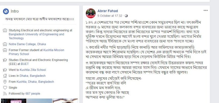 মৃত্যুর আগে জনপ্রিয় সামাজিক যোগাযোগ মাধ্যম ফেসবুকে ফাহাদের লেখা শেষ স্ট্যাটাসটি ছিল