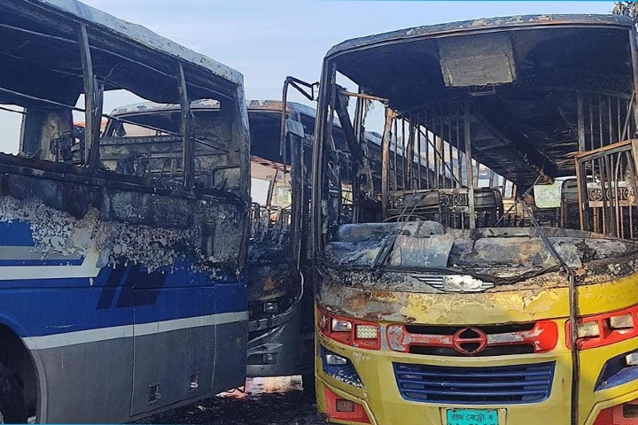 ফিলিং স্টেশনে দাঁড়িয়ে থাকা ৩ বাসে আগুন