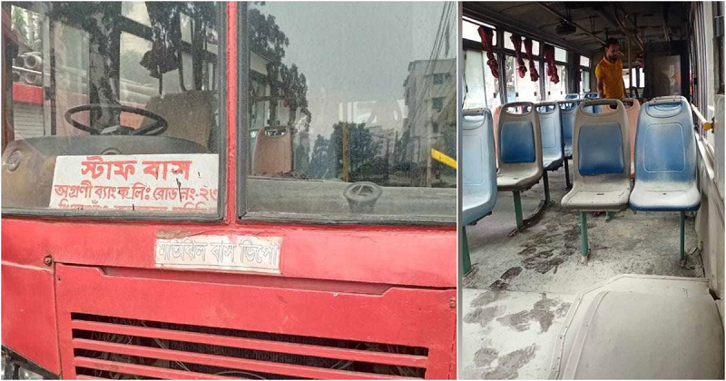 খিলগাঁওয়ে ব্যাংকের স্টাফ বাসে আগুন