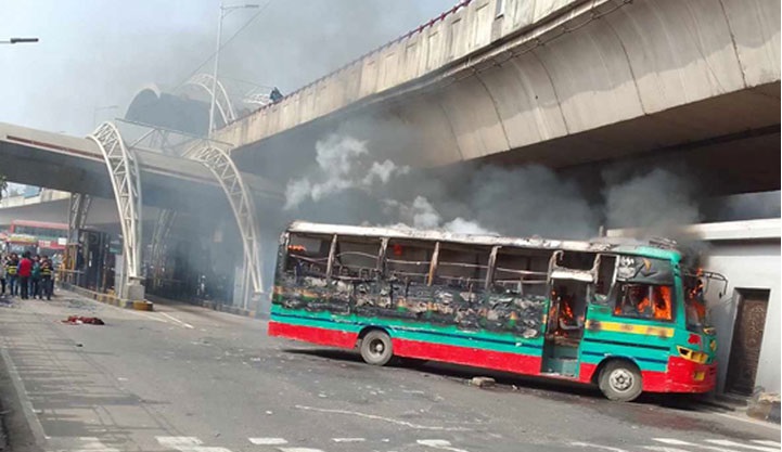 আমাদের কাগজ ডেস্ক: ১১তম দফা বিএনপির ডাকে দেশজুড়ে ৩৬ ঘণ্টার অবরোধ শুরু হয়েছে আজ। অবরোধের প্রথম দিনে রাজধানীর হানিফ ফ্লাইওভারের নিচে একটি বাসে আগুন দিয়েছে দুর্বৃত্তরা। আজ মঙ্গলবার ১২ ডিসেম্বর দুপুর সময় পরিবহনের একটি চলন্ত বাসে দুর্বৃত্তরা আগুন দিয়েছে বলে জানা যায়।