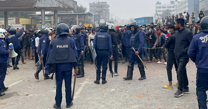 গাজীপুরে শ্রমিকদের সঙ্গে পুলিশের ধাওয়া-পাল্টা ধাওয়া