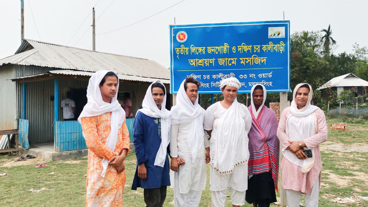ময়মনসিংহ নগরীর ৩৩ নম্বর ওয়ার্ডের দক্ষিণ চরকালিবাড়ি ব্রহ্মপুত্র নদের তীরে বসবাস হিজড়াদের। সরকারের ৩৩টি আশ্রয়ণ প্রকল্পের ঘরে বসবাস করেন ৪০ জন হিজড়া। গত ২৬ জানুয়ারি আশ্রয়ণ প্রকল্পের পাশেই হিজড়াদের জন্য ৩৩ শতাংশ জায়গায় মসজিদ ও কবরস্থানের উদ্বোধন করেন বিভাগীয় কমিশনার উম্মে সালমা তানজিয়া। পরে হিজড়ারা নিজেদের শ্রম ও অর্থে স্থাপন করেন টিনশেড মসজিদ। মসজিদের পুরো কাজ এখনো সম্পন্ন না হলেও রোজার তিন দিন আগে উদ্বোধন করা হয়।