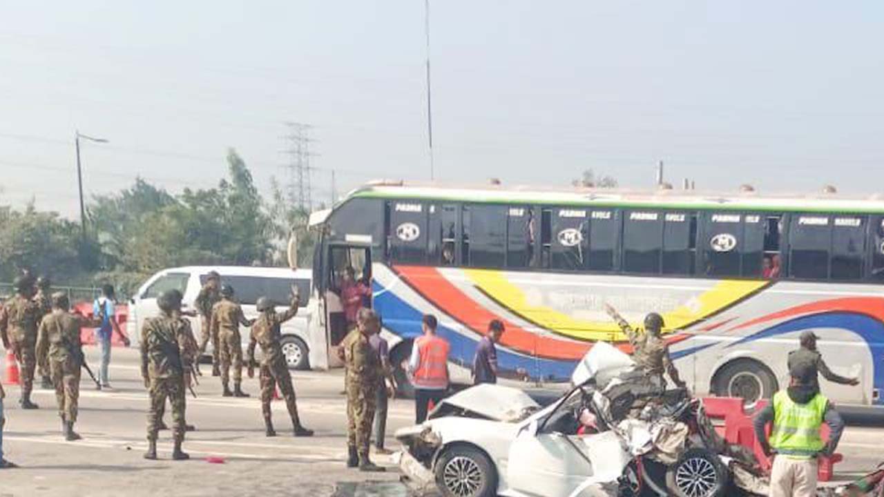 প্রত্যক্ষদর্শী ও শ্রীনগর ফায়ার সার্ভিসের স্টেশন কর্মকর্তা দেওয়ান আজাদ বিষয়টি নিশ্চিত করে ঢাকা পোস্টকে জানান, আজ বেলা ১১টার দিকে এক্সপ্রেসওয়েতে টোল পরিশোধের জন্য দাঁড়িয়ে থাকা মোটরসাইকেল, মাইক্রোবাস ও প্রাইভেট কারকে পেছন থেকে ঢাকা-কুয়াকাটা রুটের ব্যাপারী পরিবহনের একটি বাস ধাক্কা দেয়। এতে সামনে থাকা গাড়িগুলো দুমড়েমুচড়ে যায়। এ সময় প্রাইভেটকারের ভেতরে আটকা পড়ে ঘটনাস্থলেই নিহত হন একজন। বাকিদের ঢাকা নেওয়ার পথে মৃত্যু হয় বলে জানান ফায়ার সার্ভিসের এই কর্মকর্তা।