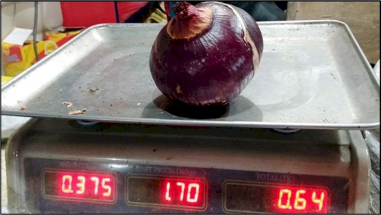 জুনায়েদ আহমেদ পলক জানান, বৃহস্পতিবার সন্ধ্যায় তিনি চুনারুঘাট বাজার থেকে ১৭০ টাকা কেজি দরে ৩৭৫ গ্রাম ওজনের ভারতীয় বড় জাতের একটি পেঁয়াজ কেনেন। পেঁয়াজটির দাম হয় ৬৫ টাকা।