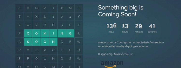 মার্কিন যুক্তরাষ্ট্রের জনপ্রিয় ই-কমার্স সাইট অ্যামাজন বাংলাদেশে তাদের কার্যক্রম শুরু করার ঘোষনা দিয়েছে। সাড়ে চার মাস অর্থ্যাৎ ১৩৬ দিন পরই আনুষ্ঠানিকভাবে গ্রাহকের জন্য উন্মুক্ত হবে অ্যামাজন।