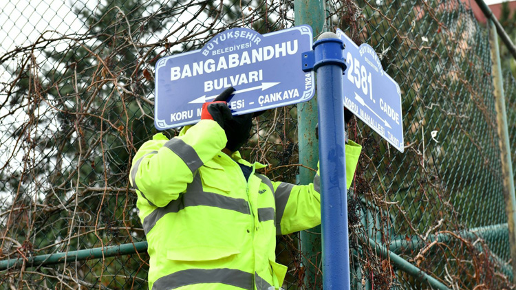তুরস্কের আঙ্কারার সাবেক মেয়র মেলিহ গোকসেক ১৯৯৭ সালে বঙ্গবন্ধুর স্মরণে রাস্তাটির নামকরণ করেন। কিন্তু এরপর স্থানীয়দের উচ্চারণের সমস্যার কারণে তুরস্কের রাজধানী আঙ্কারার ‘বঙ্গবন্ধু শেখ মুজিবুর রহমান’ সড়কটির নামে কাটছাঁট করে শুধু ‘বঙ্গবন্ধু’ রেখেছে স্থানীয় প্রশাসন।