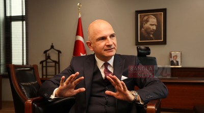 এ বিষয়ে আমরা সবেমাত্র আলোচনা শুরু করেছি। আমরা বিশ্বাস করি, দুই দেশের মধ্যে আগের চেয়ে এই খাতে আরও বেশি সহযোগিতার সুযোগ রয়েছে বলেও তিনি জানান। তুরস্ক কোন ধরনের সামরিক সরঞ্জাম তৈরি করে থাকে যা বাংলাদেশের জন্য প্রয়োজনীয় হতে পারে, এমন প্রশ্নের উত্তরে তুরস্কের রাষ্ট্রদূত বলেন, আমরা ড্রোন, মিসাইল, সামরিক যোগাযোগ সরঞ্জাম, নৌ-বাহিনীর জন্য অফশোর পেট্রোল ভেসেলস ইত্যাদি তৈরি করে থাকি। এই তালিকা অনেক দীর্ঘ।