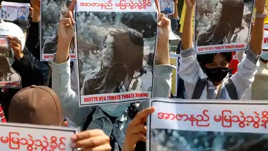 ২০ বছর বয়সী ওই নারীর নাম মিয়া থট থট খিয়াং। মানবাধিকার গোষ্ঠীগুলো বলছে– তাজা গুলিতে তিনি আহত হয়েছিলেন।