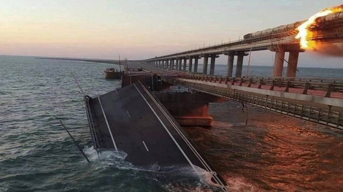 শক্তিশালী বিস্ফোরণে মারাত্মক ক্ষতিগ্রস্ত হয়েছে ক্রিমিয়ান সেতু। দুই ভাগে বিভক্ত সেতুর সড়ক অংশের দুটি খণ্ড বিস্ফোরণে ধসে পড়েছে। আগুন লেগেছে রেল অংশে থাকা তেলবাহী ট্যাংকারে। রাশিয়া বলছে, একটি গাড়িবোমা ব্যবহার করে এই ঘটনা ঘটানো হয়েছে। তবে তাৎক্ষণিকভাবে এর জন্য কাউকে দায়ী করা হয়নি। খবর এপির।