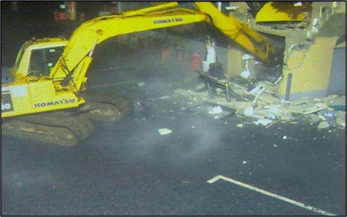 না, এটি কোনো হলিউড মুভির দৃশ্য নয়। বাস্তবেই এমনটি ঘটেছিল উত্তর আয়ারল্যান্ডের ডান্গিভেনে। গত ৭ এপ্রিল এভাবেই অ্যাকশন মুভির কায়দায় এটিএমের টাকা চুরি করে এক দল দুষ্কৃতিকারী। প্রথমে কাছেই একটি নির্মীয়মান আবাসনের থেকে ডিগারটি চুরি করে মুখোশধারীরা। তারপর সেই ডিগার ব্যবহার করে দেয়ালে বসানো এটিএম ভেঙে টাকার ভল্ট বের করে আনে তারা।