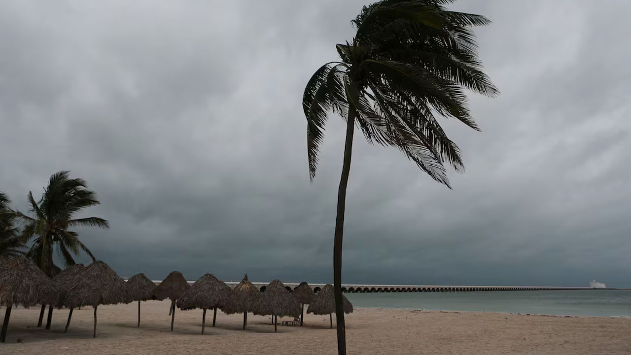হ্যারিকেন মিল্টন ধেয়ে আসার সাথে সাথে মেক্সিকোর প্রগ্রেসোতে সমুদ্র সৈকতে মেঘ দেখা যাচ্ছে। গত সোমবারের ছবি