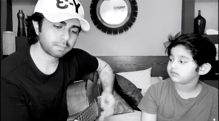 সেখানে দেখা যাচ্ছে অভিনেতা জিয়াউল ফারুক অপূর্বের হাঁতে গিটার, পাশে বসা তার একমাত্র ছেলে জায়ান ফারুক আয়াশ। অপূর্ব গিটার বাজিয়ে গাইতে শুরু করলেন ‘ওরে নীল দরিয়া…’, একটু একটু করে তার সঙ্গে গানটিতে ঠোঁট মেলাতে শুরু করে ছেলে আয়াশও।