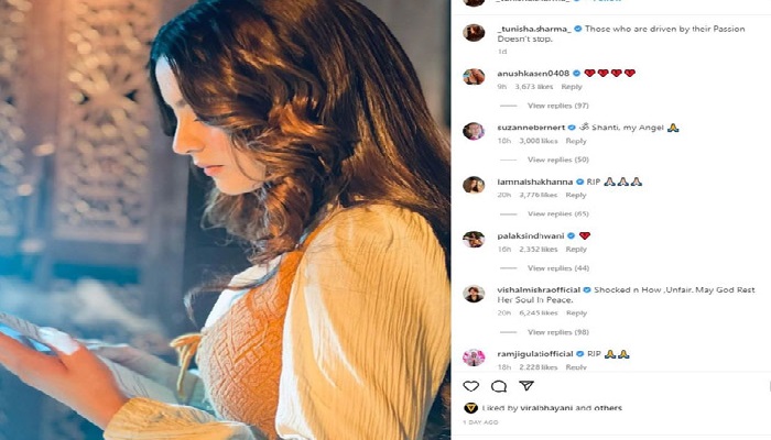 তুনিশা তার ইনস্টাগ্রাম হ্যান্ডেলের গল্পে তার মেকআপ করার একটি ভিডিও পোস্ট করেছেন। পাশের মুখের একটি ছবিও শেয়ার করেছেন তার ইনস্টাগ্রাম পেজে। তিনি ক্যাপশনে লিখেছেন, 'যারা আবেগকে ভালোবাসে তাদের কখনোই তাদের ইচ্ছা বন্ধ করা উচিত নয়।'