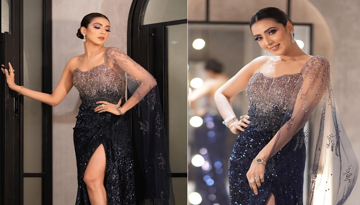 এদিন চোখ ধাঁধানো পোশাকে অনুষ্ঠানস্থলে হাজির হন বিদ্যা সিনহা মিম। ভারী ডিজাইনে তৈরি নীল ও ধূসর রঙের পোশাকে নায়িকার উপর থেকে নজর সরানোই যেন দায় ছিল।