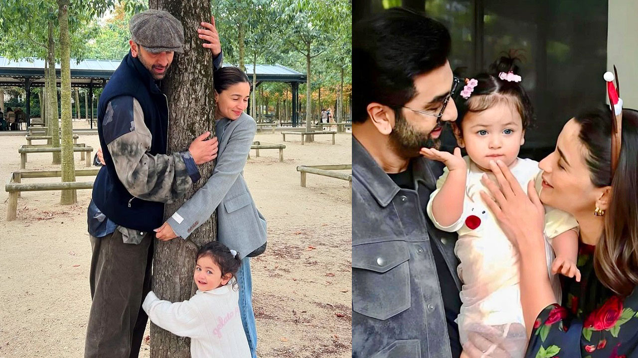 প্রথম ছবিতে দেখা যাচ্ছে, তারা তিনজনই একটি গাছকে আলিঙ্গন করছেন, রণবীরের চোখ রাহার দিকে, ক্যামেরায় তাকিয়ে আছেন তারকাকন্যা, বাবা-মেয়ের সেই মুহূর্ত দেখে হাসছেন আলিয়া।