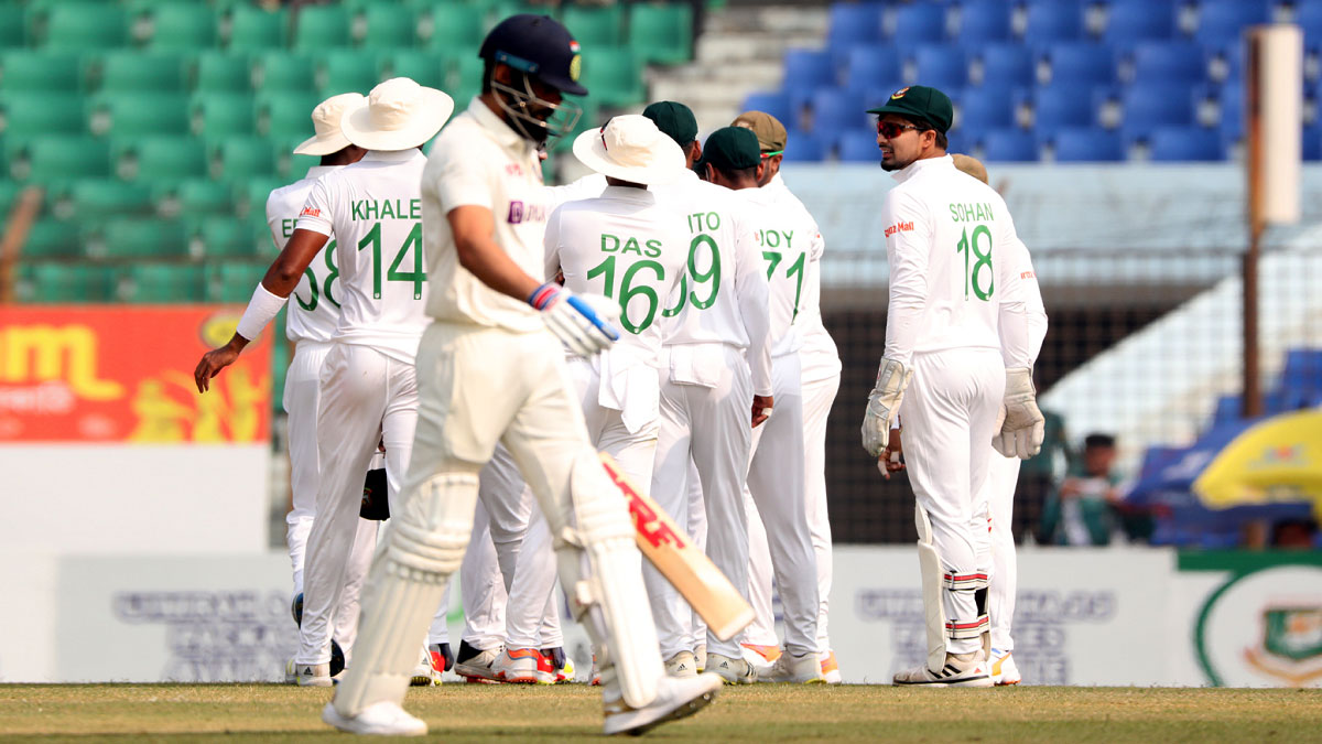 ভারতীয় দলের তারকা ব্যাটার বিরাট কোহলিকে ফেরান টাইগার এই স্পিনার। ব্যক্তিগত ১ রান করে লেগ বিফোরের ফাঁদে আটকে যান সময়ের অন্যতম সেরা এই ব্যাটার। কোহলি-রাহুলকে হারিয়ে বেশ চাপে ছিল ভারত। তবে সাময়িক সে চাপ সামলে নেওয়ার চেষ্টা করছেন ঋষভ পান্ত এবং চেতেশ্বর পূজারা।