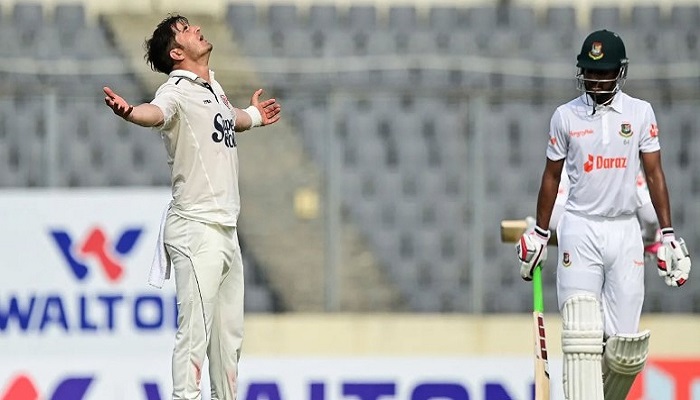 স্পোর্টস ডেস্ক : মিডল অর্ডার ব্যর্থতার পর মুশফিক-মিরাজ জুটিতে দারুণভাবে ঘুরে দাঁড়িয়েছিল বাংলাদেশ। তাদের কল্যাণেই গতকাল শেষ বিকেলে রঙ ছড়িয়েছিল বাংলাদেশ। কিন্তু দিন শেষে রাতের বিরতিতেই যেন টাইগার শিবিরে লুট-পাট! আজ ১১ রান যোগ করতেই দুই স্বীকৃত ব্যাটার মুশফিক-মিরাজকে হারায় বাংলাদেশ। ডাক খেয়ে ফেরেন তাইজুলও। আজ সকালে আগের দিনের রানের সঙ্গে আর ২০ রান যোগ করতেই শেষ ৫ উইকেট হারায় বাংলাদেশ। তাতে ৩৮২ রানে প্রথম ইনিংস শেষ হয় স্বাগতিকদের।