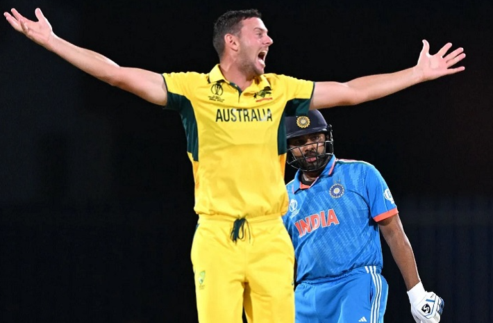 দ্বিতীয় ওভারে জস হ্যাজলউডের বলে দুই উইকেট হারায় ভারত। আউট হন রোহিত শর্মা এবং স্রেয়াশ আয়ার। ওভারের তৃতীয় বলে এলবিডব্লিউর শিকার হন রোহিত। যদিও তিনি রিভিউ নিয়েছিলেন। কিন্তু রিভিউতে উইকেট ফিরে পেলেন না ভারত অধিনায়ক।