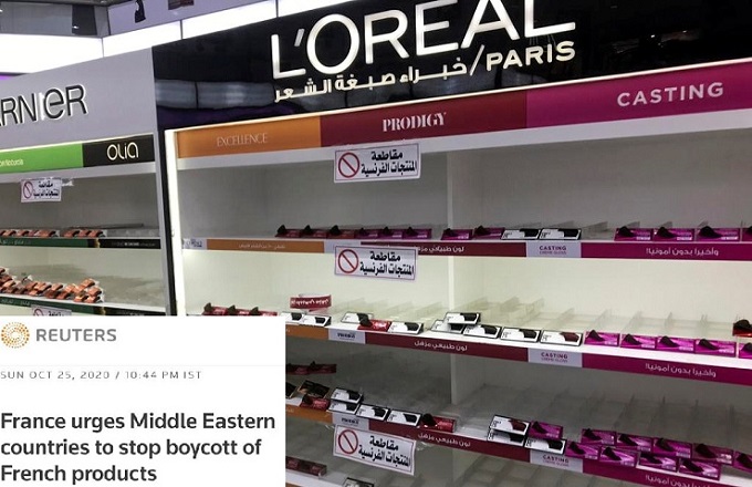 মহানবী (স.) কে অবমাননার অভিযোগে বিশ্বজুড়ে ফরাসি পণ্য বয়কটের ডাক দিয়েছে মুসলিমরা। এ বিষয়ে ব্যাপক প্রতিক্রিয়া সৃষ্টি হয়েছে সামাজিক মাধ্যমে। এরই মধ্যে কুয়েতসহ কয়েকটি আরব দেশ ফরাসি পণ্য বয়কটের ডাক দিয়েছে। তারই প্রেক্ষিতে ফরাসী পণ্য বয়কট না করার অনুরোধ করেছে ফ্রান্স।