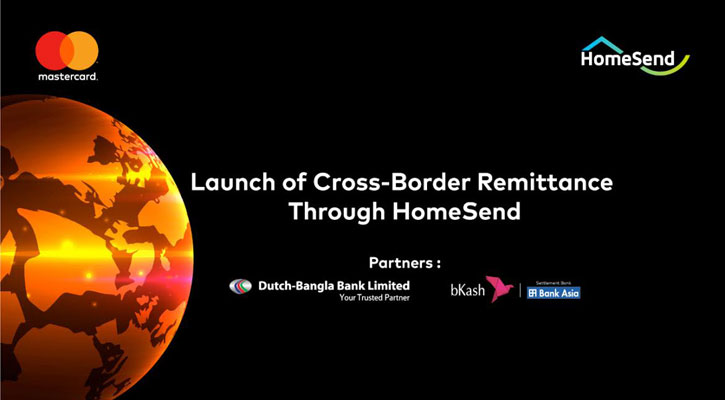 সোমবার (২৫ জানুয়ারি) বিকেলে আয়োজিত ভার্চ্যুয়াল অনুষ্ঠানে দেশের আর্থিক সেবা খাতে ক্রস-বর্ডার অর্থ স্থানান্তর প্রক্রিয়া জোরদার করার লক্ষ্যে বিকাশ ও ডাচ-বাংলা ব্যাংক লিমিটেডের (ডিবিবিএল) সহায়তায় রেমিটেন্স বা প্রবাসী আয় সংক্রান্ত সেবা প্রদানকারী প্ল্যাটফর্ম হোমসেন্ডের কার্যক্রম শুরু করার ঘোষণা দিয়েছে মাস্টারকার্ড।