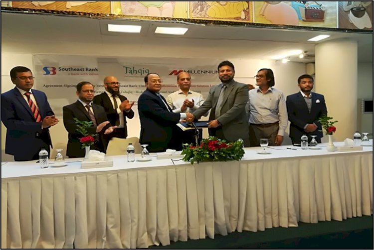 সাউথইস্ট ব্যাংক লিমিটেড এবং মিলেনিয়াম ইনফর্মেশন সলিউশন লিমিটেড (এমআইএসএল) এর মধ্যে ‘তাহকিক’ নামক ঝুঁকিভিত্তিক অভ্যন্তরীণ নিরীক্ষণ ব্যবস্থা (আরবিআইএএস) এর সফটওয়্যার লাইসেন্স চুক্তি স্বাক্ষরিত হয়েছে।