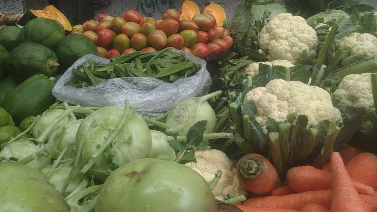 সাপ্তাহিক ছুটির দিন আজ বাজারে প্রতি পিস ফুলকপি বিক্রি হচ্ছে ৪০ টাকায়, প্রতি পিস বাঁধাকপি ৪০ টাকায় বিক্রি হচ্ছে। প্রতি কেজি নতুন টমেটো বিক্রি হচ্ছে প্রতি ১৪০ টাকায়, মুলা প্রতি কেজি ৩০ টাকায়, লম্বা বেগুন প্রতি কেজি ৬০ টাকায়, গাজর প্রতি কেজি ৮০ টাকায়, গোল বেগুন প্রতি কেজি ৮০ টাকায়, পেঁয়াজ ফুল প্রতি আঁটি ২০ টাকায়, ঝিঙা প্রতি কেজি ৮০ টাকায়, শালগম প্রতি কেজি ৫০ টাকায়, পটল প্রতি কেজি ৮০ টাকায়, কাঁচা টমেটো প্রতি কেজি ৫০ টাকায় বিক্রি হচ্ছে।